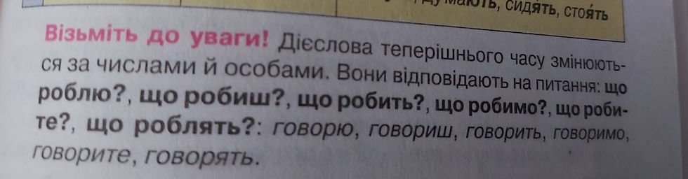 с.147-ознайомитися з таблицею вас.290. Зверни увагу на особи та число. Запам'ятай питання на які відповідають Дієслова теп.часу.